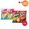포카칩 5개, 어니언 5개, 썬 핫스파이시 5개, 갈릭바게트 5개를 포함한 패키지와 나랑드사이다 제로 345ml를 할인된 가격으로 구매할 수 있는 행사입니다. 쿠폰을 통해 각각의 상품을 더 저렴한 가격에 제공받을 수 있습니다.