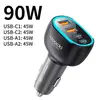 90W 미니 차량용 충전기입니다. 내장형 스마트 식별 칩이 탑재되어 있으며, 자동 전력 조정과 과충전 방지 설계가 적용되어 있습니다. 이 제품은 삼성 아이폰 Qi2.2 PPS를 지원합니다.